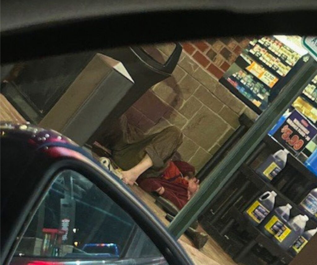 Dittmar sent me a photo from earlier this week of an alleged homeless man passed out at Sheetz gas station near the Woodsdale section of Wheeling.