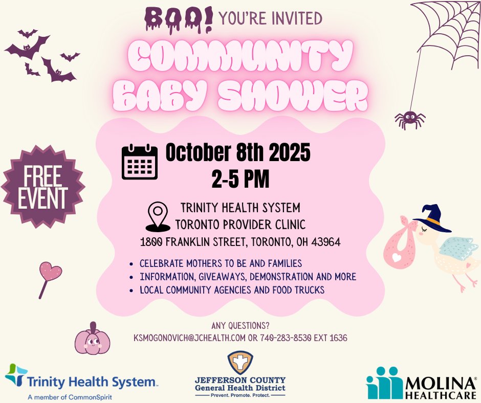 STEUBENVILLE, Ohio – The Jefferson County General Health District (JCGHD) is hosting a Community Baby Shower to provide resources and education for Jefferson County families.