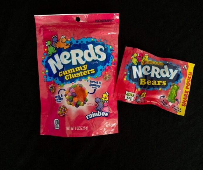 Left – Legitimate Nerds candy; Right – Intoxicating hemp product packaged simlarly to Nerds candy