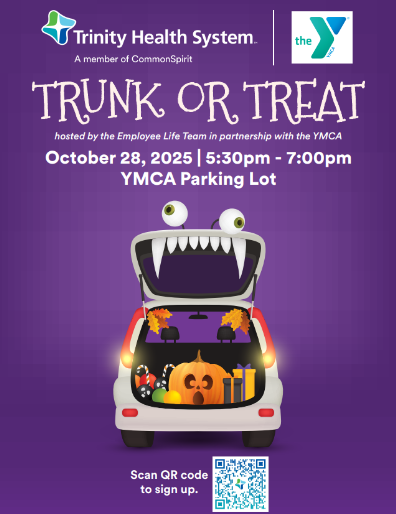 STEUBENVILLE, Ohio – Trinity Health System will be hosting a Trunk or Treat in the YMCA Parking Lot, 3151 Johnson Road in Steubenville on Tuesday, October 28, from 5:30 p.m. to 7 p.m.
