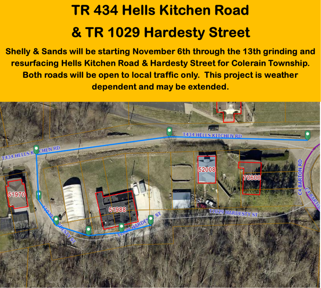 BELMONT COUNTY, Ohio – Colerain Township will be starting a resurfacing job November 6, weather permitting, according to Jeff Wodarcyk, Road Foreman for Colerain Township.