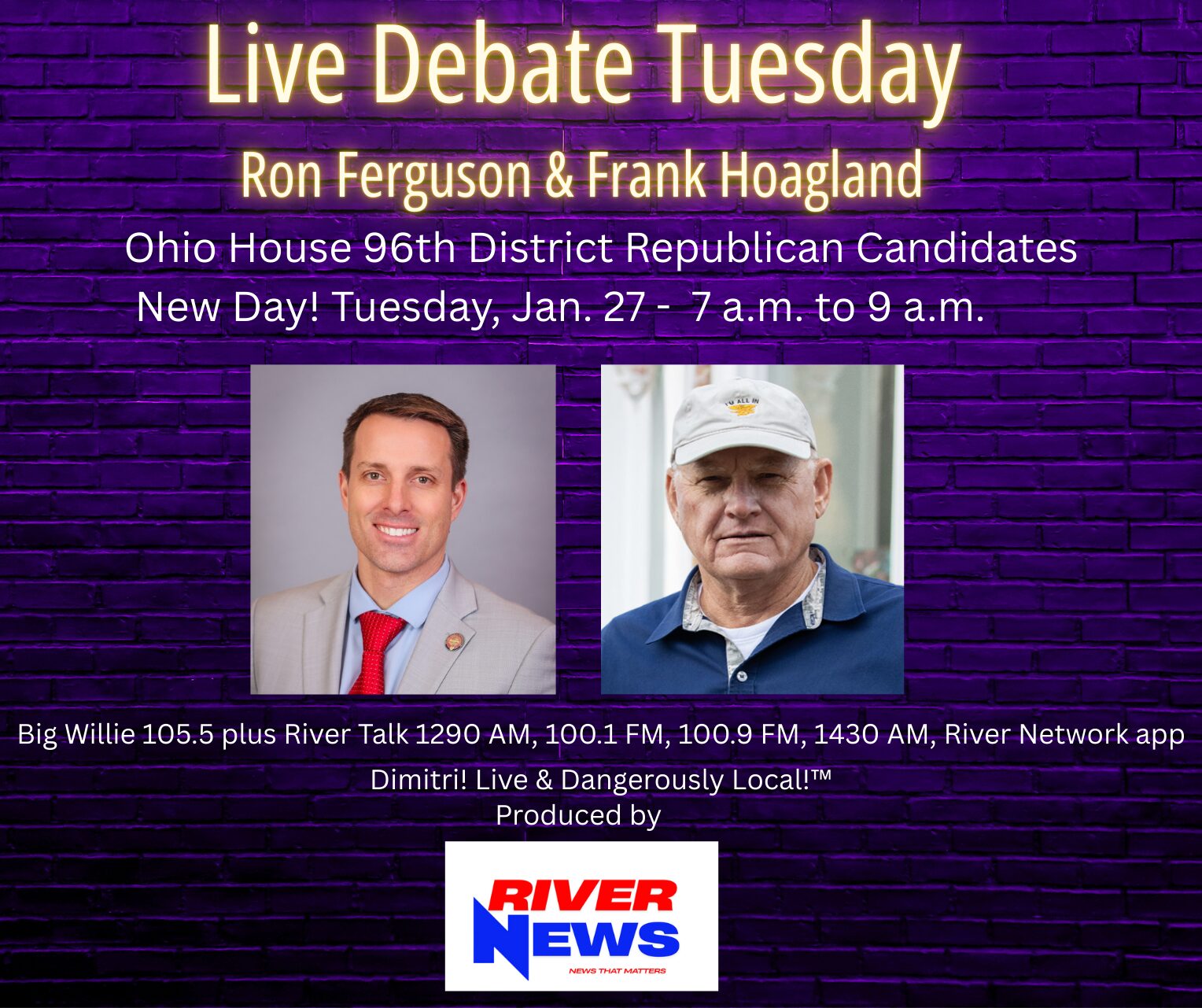 The broadcast airs 7–9 a.m. on the RiverTalk Network and Big Willie 105.5 FM. The debate highlights the Republican primary for Ohio’s 96th House District, with both candidates outlining their priorities and contrasting their visions for the district ahead of the 2026 election.