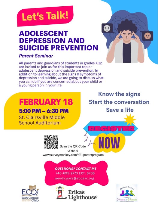 ST. CLAIRSVILLE, Ohio – St. Clairsville-Richland City Schools is sponsoring a community event focusing on adolescent depression and suicide prevention.