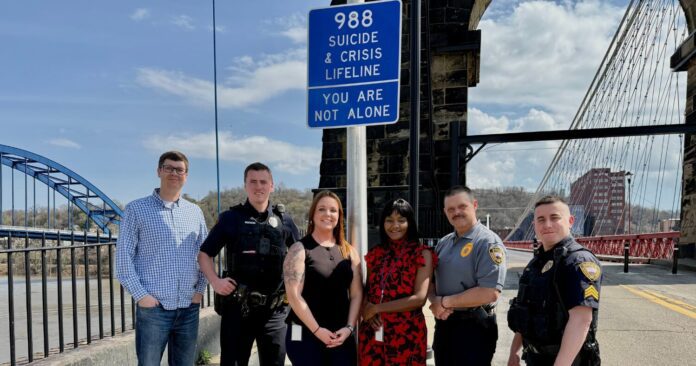 WHEELING, W.Va. —  The Wheeling Police Department recently worked together with the West Virginia Division of Highways (WVDOH) to install 988 Suicide and Crisis Lifeline signs on the Wheeling Suspension Bridge and around the I-70 Fort Henry Bridge.
